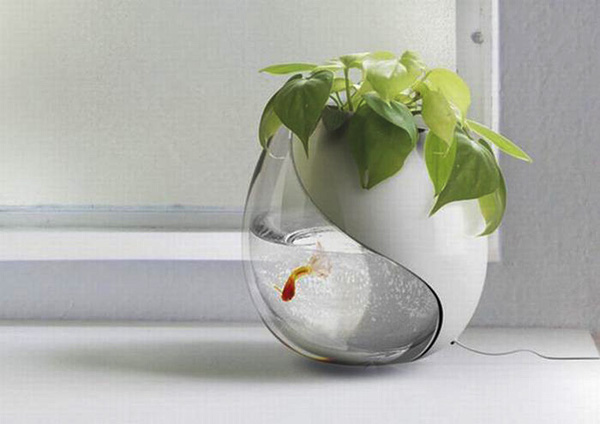 Bên cạnh chậu cây xanh trên bàn làm việc bạn có thể đặt một bể cá nhỏ có kích thước không quá lớn để không chiếm quá nhiều diện tích mặt bàn và không làm cản trở các thao tác trong quá trình làm việc. Người sử dụng chiếc bàn đó sẽ cảm thấy thích thú khi ngắm những chú cá bơi lội từ đó quen đi căn thẳng trong công việc hằng ngày, giúp cân bằng tinh thần, mang bạn đến gần với thiên nhiên, tạo nhiều năng lượng.